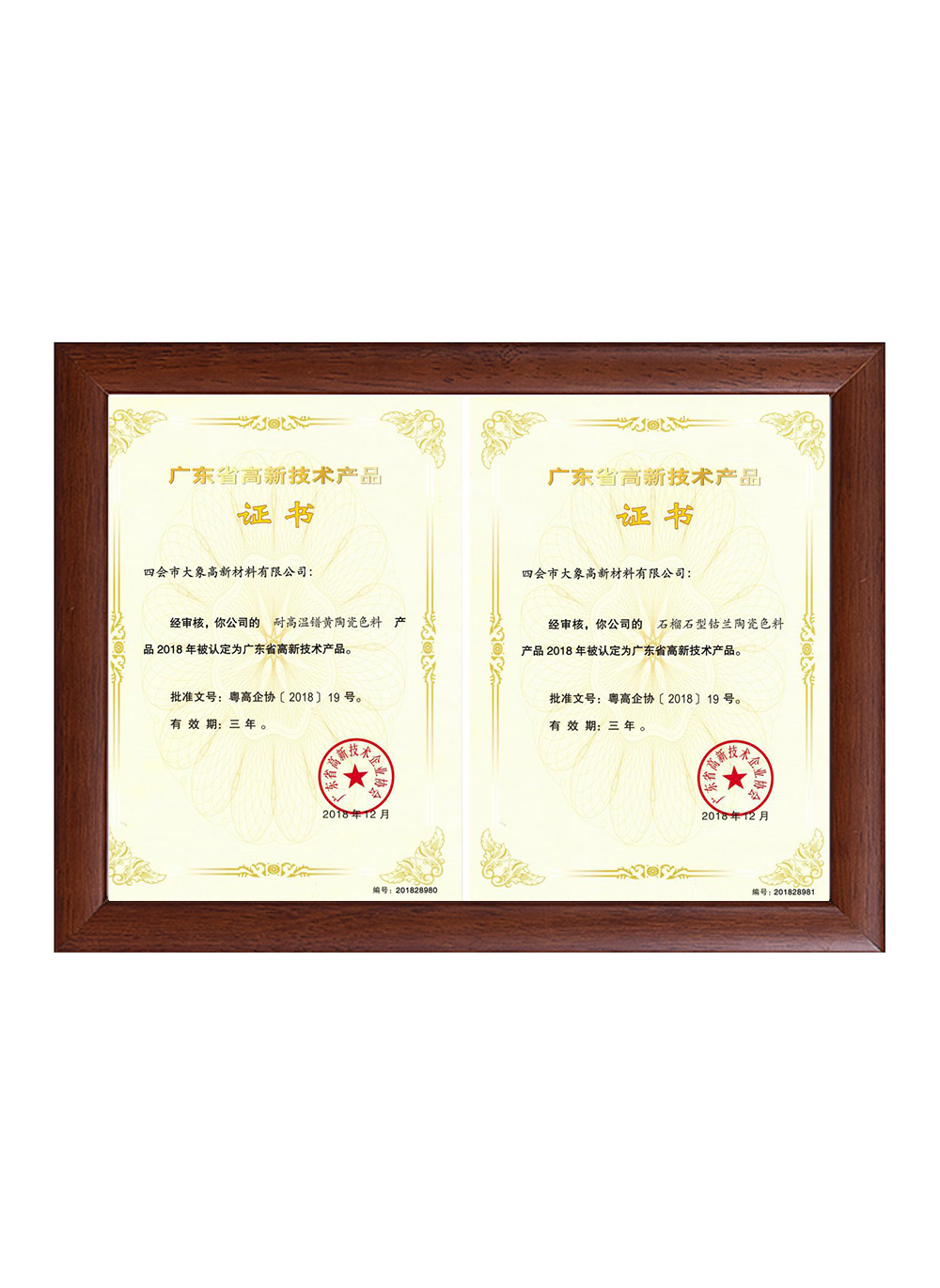 公司成立至今销售额连继增长,营业额于2018年已突破1.8亿元,在江西高安、四川夹江、江苏宜兴、山东淄博等各陶瓷展区均设有办事处。并与美国福禄、中国制釉集团均有研发生产代加工项目,产品销往全国各地,并出口至台湾、日本、欧洲、东南亚各国。公司现有员工近200人,其中拥有大专以上学历研发团队、技术服务团队20余人。主打产品有陶瓷坯用干混色料系列、陶瓷坯用湿法色料系列、钴系墨水色料系列、搪瓷级色料、塑料级色料。公司成立以来,为应对国内外各用户需求,提高自身生产管理水平,不断追求创新,于2018年获国家生产发明专利6项,广东省高新技术产品10项,并于同年获得国家高新技术企业称号。